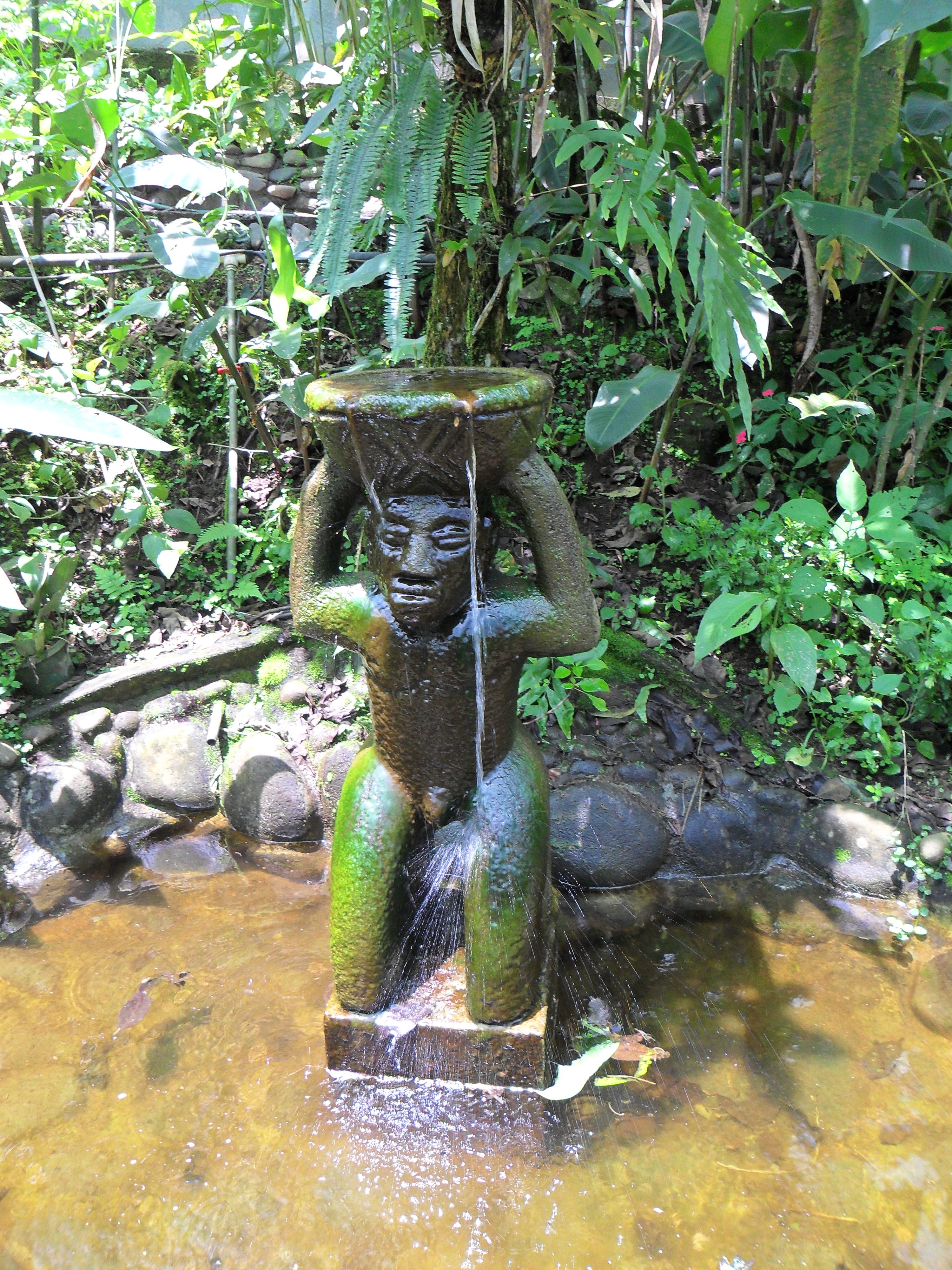 Twice we stopped at a place called El Jardin, once on the way to Monteverde and another on the way back to San Jose from the Pacific Coast town of Jaco.  In addition to their beautifully landscaped outdoor gardens, they possessed a small greenhouse filled with butterflies and a sculpture water fountain in an indigenous style seen throughout the country.