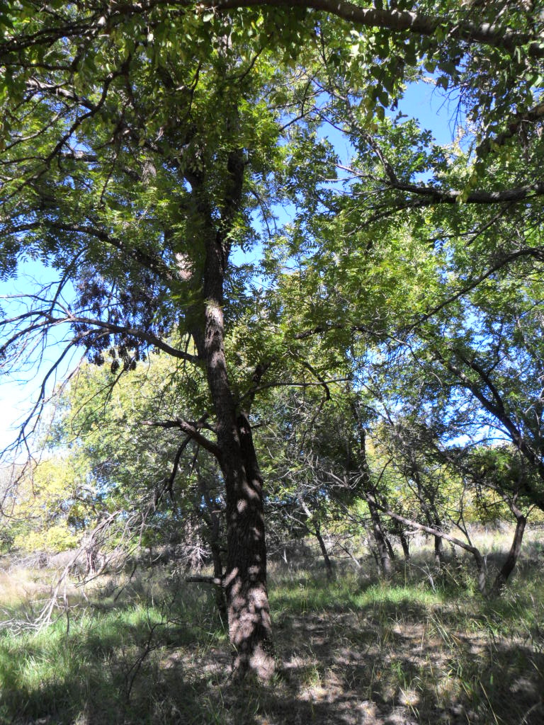 While these trees never reach the size of the ones where I grew up and the nuts remain considerably smaller, here they stood, their distinctive leaves giving them away.  Before I went away to college, every autumn, we picked up the nuts, cleaned them–while the outside is a lovely lime green, the area between the seed and outside, is a sticky, dark brown mess which makes excellent natural dark brown dye, and cracked them to retrieve the meat inside.  Black walnut nuts are much harder than English walnuts and cracking them requires a hammer and something really hard on which to place the nut. After I left home, every year Mom spent hours working on these nuts and brought me at least a pound at Christmas, a true labor of love.  They are especially tasty with in recipes with chocolate or bananas.