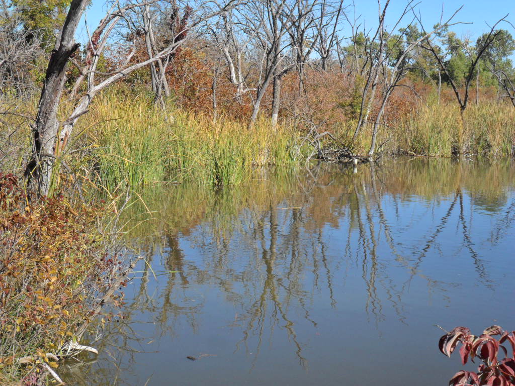 Those of us who live in the Panhandle of Texas become accustomed to the lack of trees and semi arid climate.  It is always a huge surprise to find those rare spots with numerous trees, water, and thick vegetation. Lake Marvin and much of the area near Canadian provide a total contrast to what we usually see.  JR  Bell, an expert on native grasses and plants, lead the hike around Lake Marvin, a manmade lake constructed for conservation purposes in the 1930’s on Boggy Creek.   Regretfully, I failed to carry a pen and pad to write down the name of all the grasses, some of which exist in the area where I live and others I had never seen before.  Perhaps some of you who read this will be able to identify the various grasses which include blue grama, side oats grama–the state grass of Texas, little blue stem, and two other species of blue stem, switch grass, buffalo grass, and wheat grass.  Unfortunately, Johnson grass, a non-native,  invasive species, also grows near the edges of the lake.