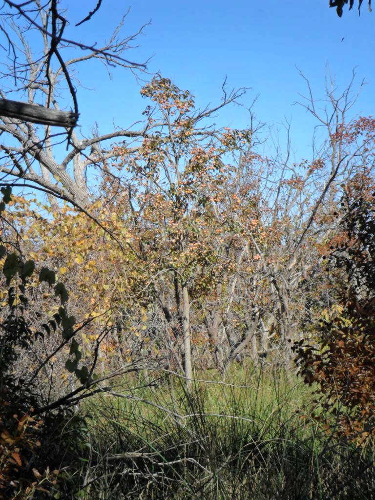 The hike provided continual surprises, a boggy pool, persimmon trees, a plant whose leaves resembled miniature spectacles, a grass so fine and thick in a glade between the trees that it looked like a tiny patch of fog on the ground, and poison ivy.