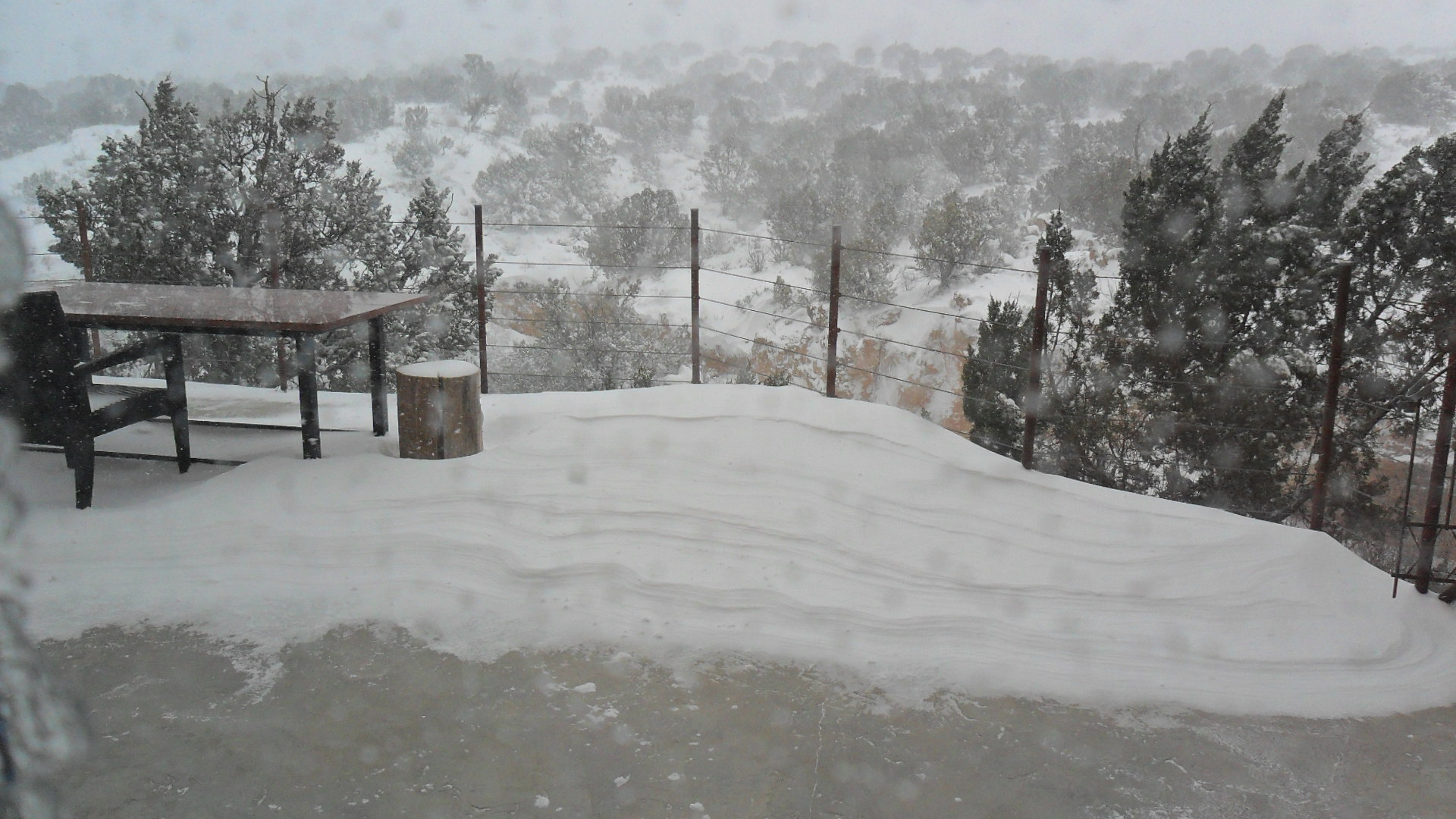 shrieking along the canyon rim, drifts piling four feet high, roads