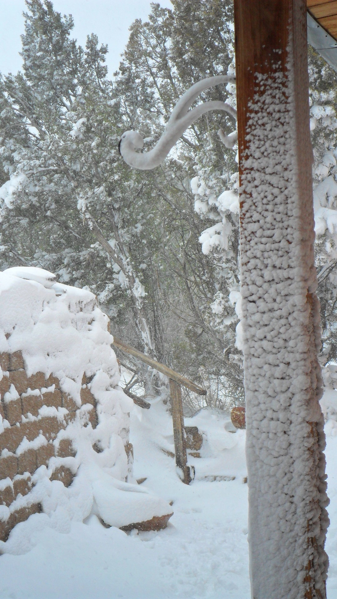 The new assignment arrived for my prose poetry class. In the last couple of hours I have read poems by Baudelaire and Rimbaud as examples of some of the first prose poems. While I read them, I listened to “The Unicorn, the Gorgan, and the Manticore” by Menotti, a piece I am supposed to be singing in 1 1/2 months. Work shut down today because of a massive blizzard. The wind literally shrieks down the canyon where I live–gusts they say to 70 mph. It piles up drifts four to six feet high. Twice today I have donned my boots, gloves, heavy coat, and gone shoveling and to feed the horses. For the first time since the barn has been there, snow is actually inside, driven by the wind, and the horses are standing in snow drifts that blew under the overhanging roof of the outside runs. Even getting to the barn door necessitated shoveling through drifts taller than I. The snow continues, predicted for another twelve hours or so, maybe as much as twenty inches. Living alone fails to daunt me, but I cannot concentrate well today. My drive is long and climbs up a steep hill. Even my four wheel drive truck may not make it. I keep thinking it may take days for me to shovel out even if, when the snow and wind cease, my neighbor brings over his tractor to help. A friend, several miles away, remains without electricity. I filled my wood burning stove with wood and started a fire just in case. It seems a perfect day to write and cook and practice music. And here I sit unable to concentrate long enough. The wind keeps rushing through my brain.