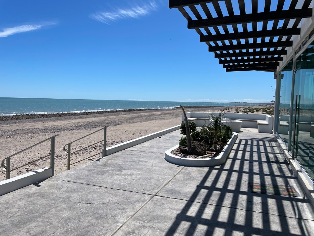 This is a very modern beachfront property with marble floors and a glass wall facing the Sea of Cortez.