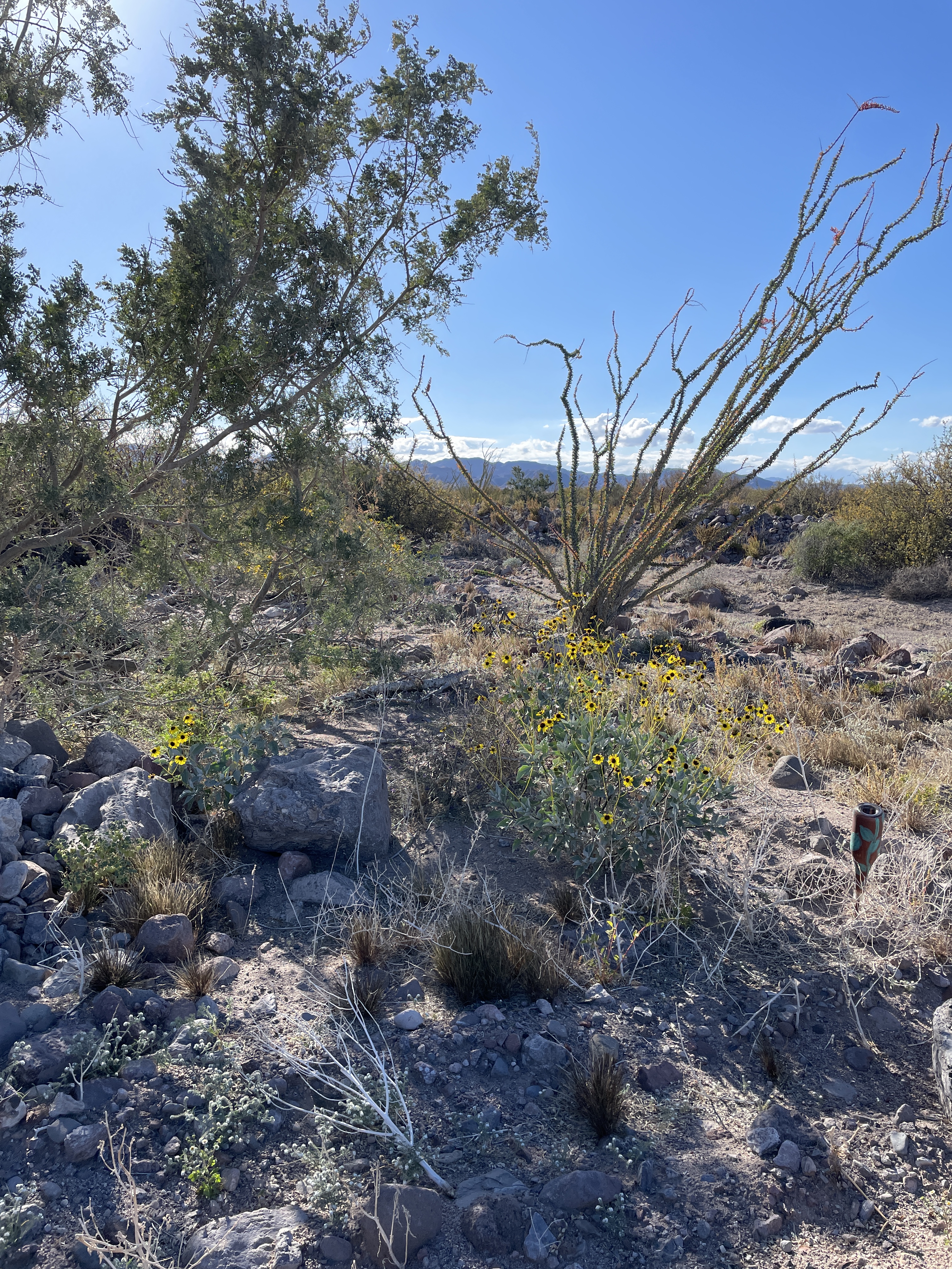 The plant on the right is ocotillo which is protected. If you are building a house and it is in the way, you have to move it elsewhere. You cannot just get rid of it.