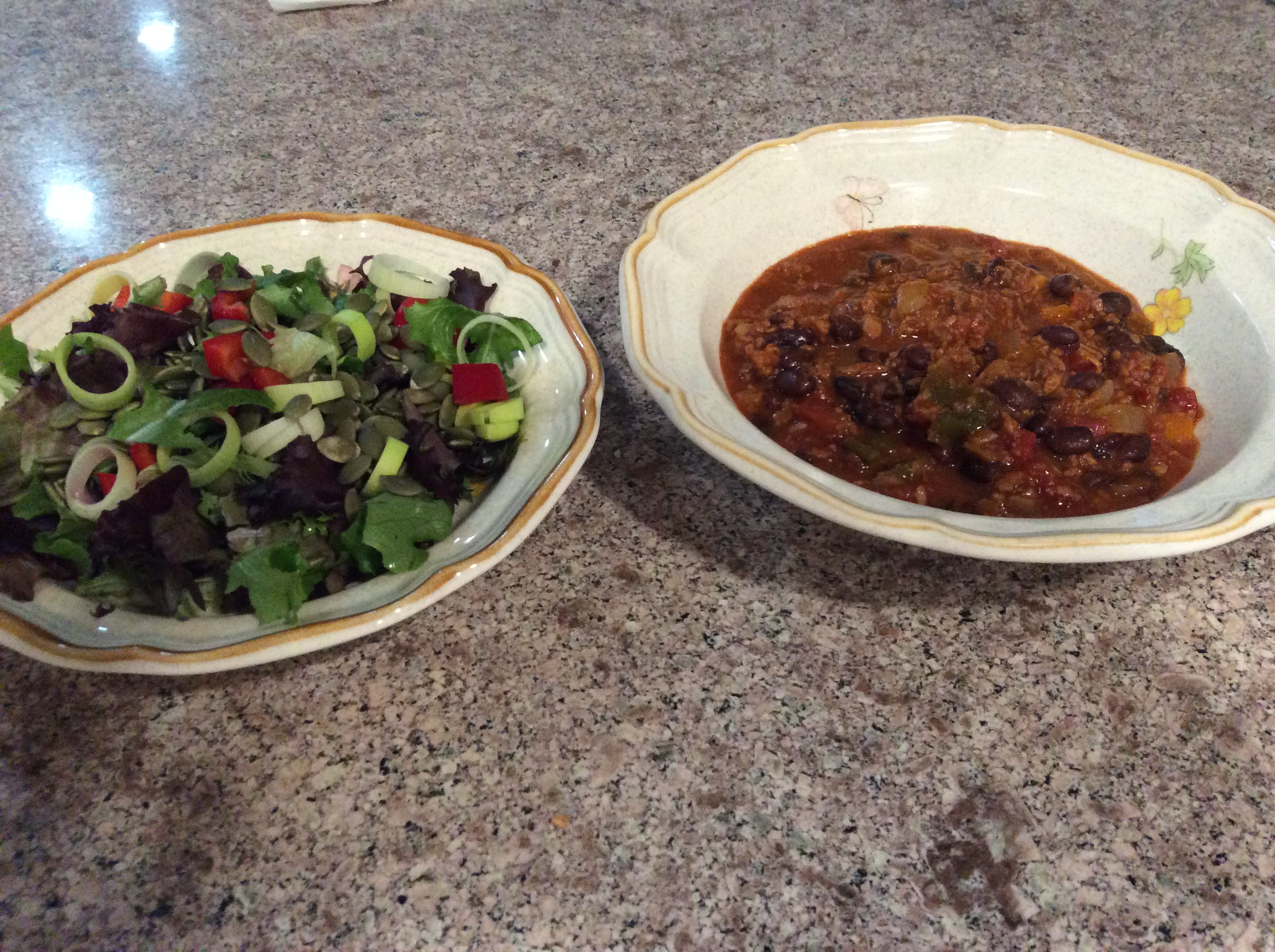 Some probably would not call this a real chili. Nevertheless, it is healthy and vegan unless you garnish it with shredded cheese.