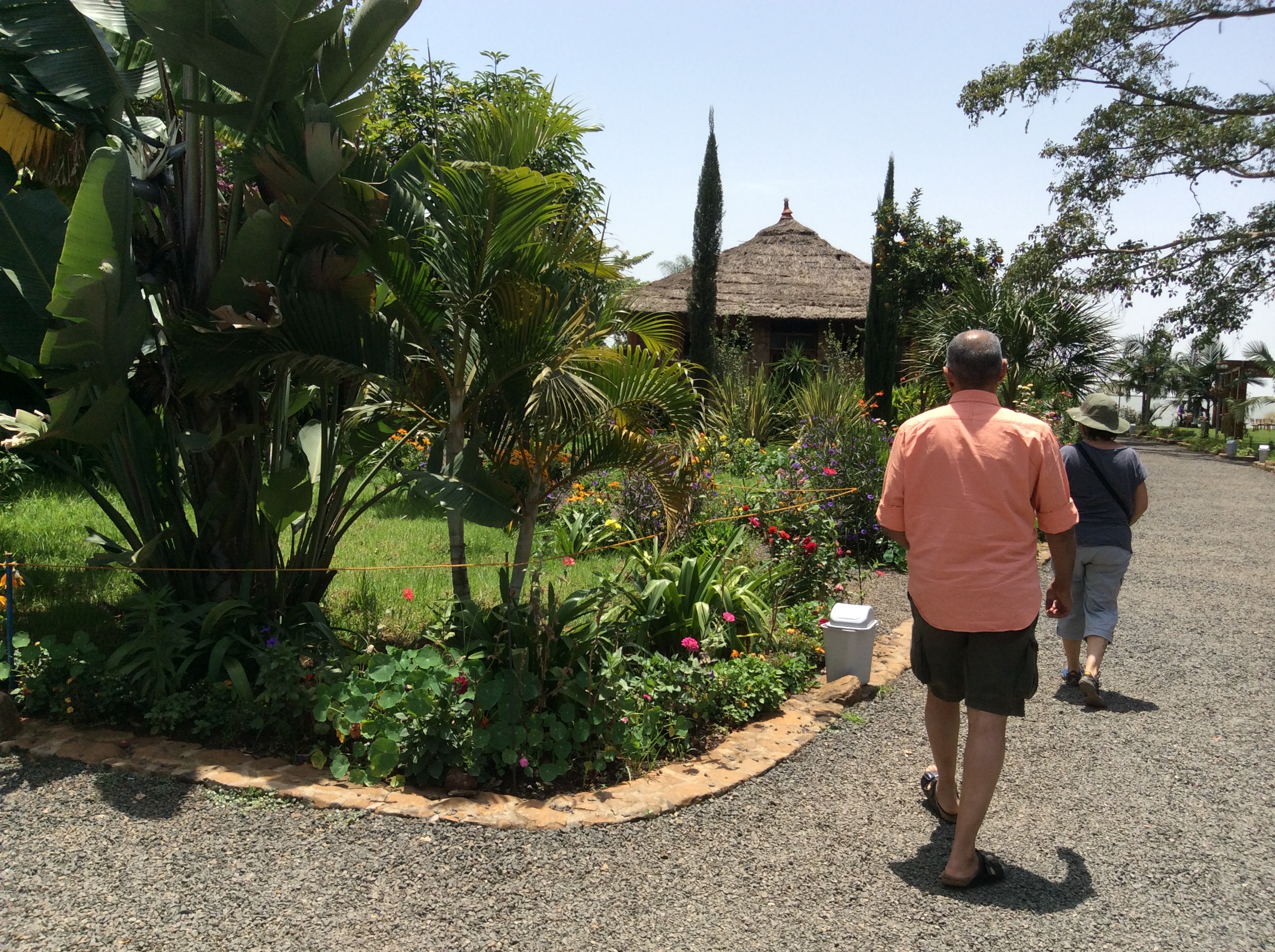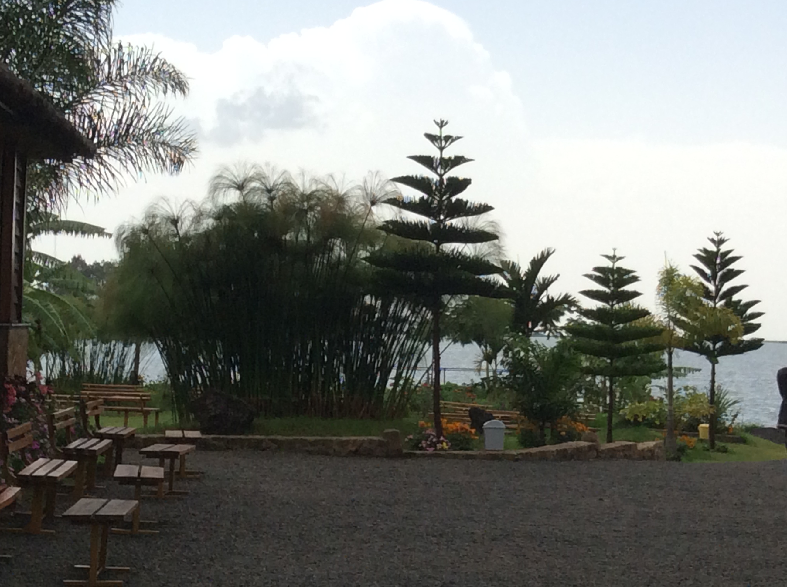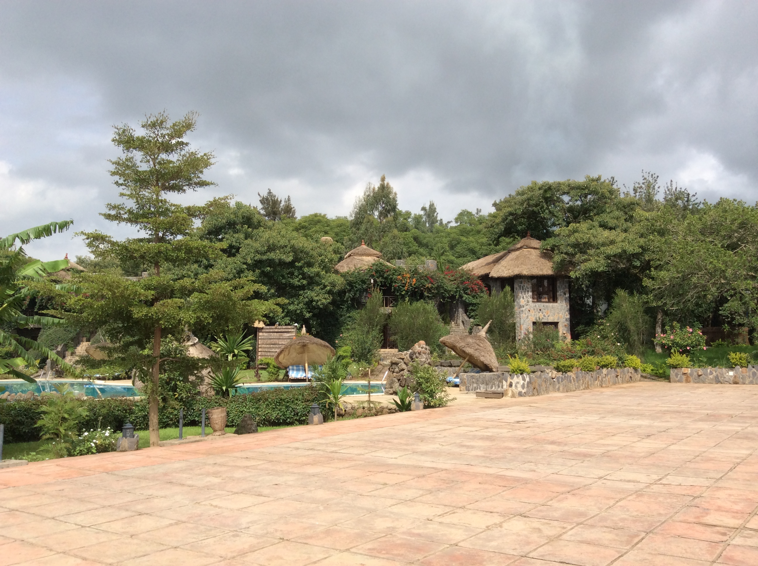 The morning we left Bahir Dar, Alemu took us to this restaurant at a fancy resort on the lake. The owner’s story remains one of those success stories one hears off and on in Ethiopia. He came to the US, worked for a big hotel here, learned the trade, saved his money, returned home, and built a couple of very successful luxury hotels. This is the restaurant at the one in Bahir Dar. All the rooms, the landscaping, everything deliberately duplicates African traditional architecture and gardening, a certain, special atmosphere.