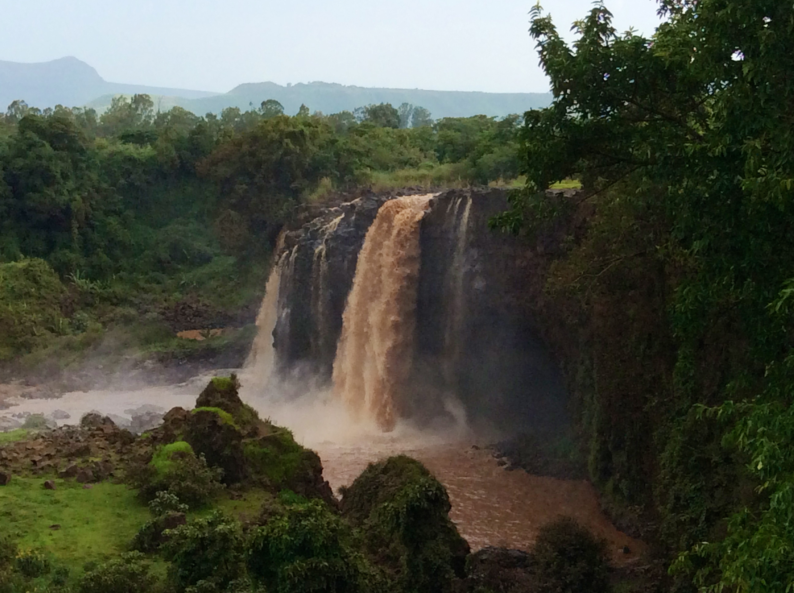 To get to the Nile Falls, you have to drive through the countryside on less than fabulous roads and park in probably the dirtiest, most dismal village I saw in all the places I visited in Ethiopia. Part of the dirty appearance, I know, was due to it being the rainy season with puddles and mud everywhere. Once I walked away from the village on the path to the falls, lush farmland lay before me.