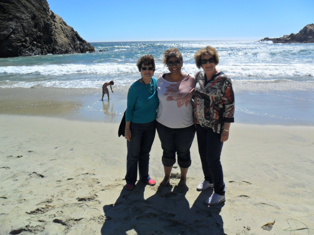 In the dark, driving back home to David and Suzy’s, we saw a bobcat, several deer, wild turkeys, a skunk, and another animal we could not identify. The next day we ladies went shopping in Carmel while David and D’mitri took a ride in the Porsche and swam. No one can go near Carmel surely and not drive the glorious drive south to Big Sur. D’mitri loves water so we stopped at two different places along the way.