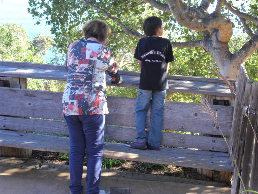 Early on a Saturday morning, Suzy and David fed us waffles to fortify us for the long drive to Flagstaff, nearly 700 miles. We crossed over to Salinas, then down 101 and finally through Bakersfield where we found a delightful, rather elegant Italian restaurant for lunch. The good looking waiter chit chatted and provided excellent service, three pluses when you go out to eat. As we cut across the middle of California, headed for I-40 eventually and neared Tehachapi, Ema decided to call D’mitri’s other grandparents who have a house there. When we went the other direction almost a week before, they had been vacationing in France. To our surprise, they answered and asked us to stop for the night. D’mitri’s excitement was contagious. He expressed special delight to have his grandfather to himself for hours instead of needing to share him with other grandchildren. The Herreros live on a hillside with a breathtaking view for miles. Unfortunately, the haze prevented proper photography so I gave up on the idea of capturing the endless panorama. However, this presented itself as the perfect opportunity for family photos.