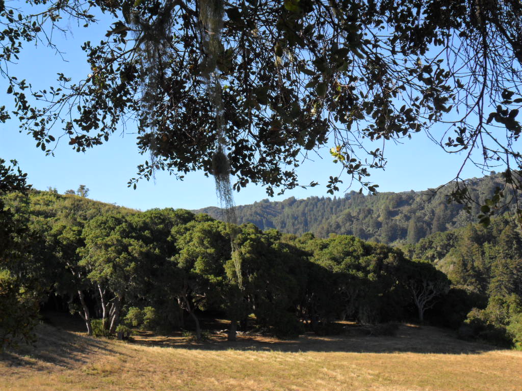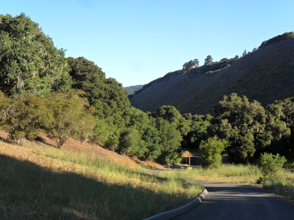Every morning this deer casually ate California poppies and ran away only if I went outside too quickly. One morning I took a long walk up one of the few roads on the Preserve. I love the live oaks and learned they are very fire resistant so residents are allowed to let them grow close to their houses. Everything else, except for a few native grasses and plants–no trees or brush, must be cleared for 150 feet all around any house.