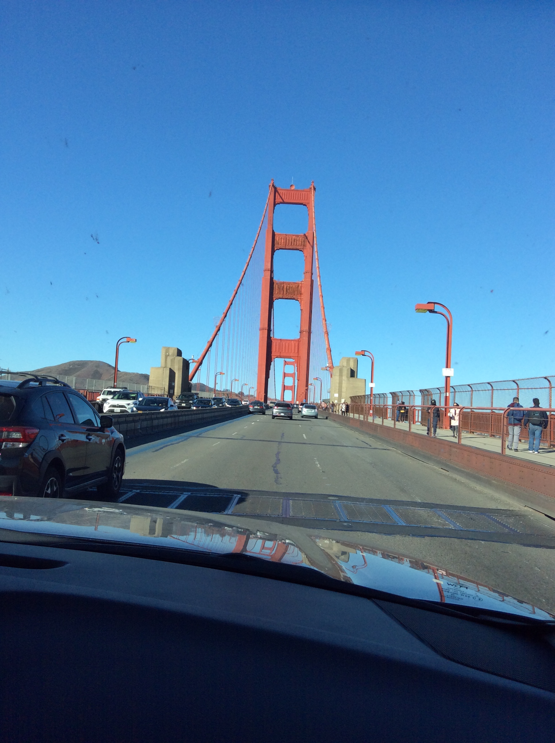 At the University of San Francisco, one of the few places where we were able to get out of the car and walk around.