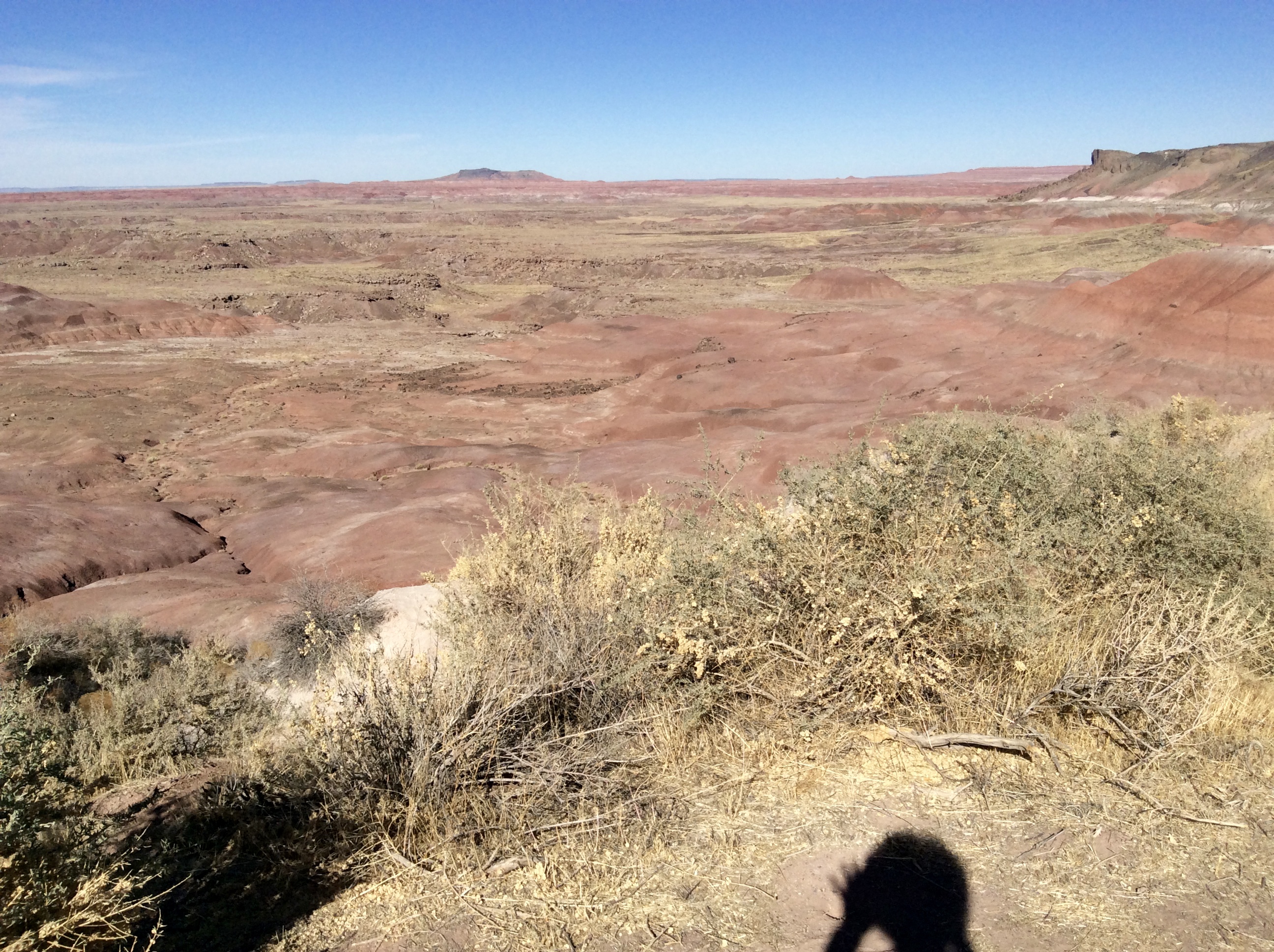 On the way out or in, depending on which way you go, you can see the Painted Desert. Guess I caught my own shadow in this one.