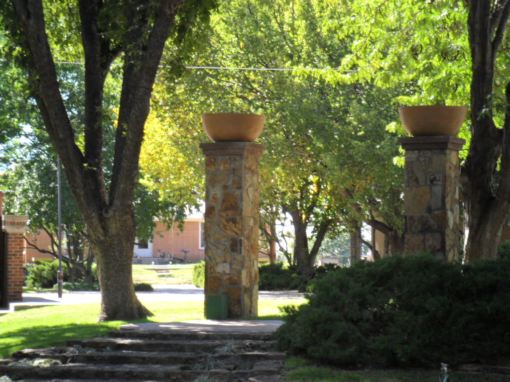 These columns stand one block back from the entry gate. The property equals one square block. This quotation is inside the entry gate to the left.
