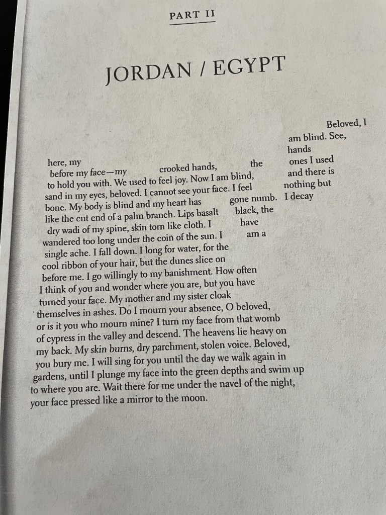 Most of the novel is Penelope’s diary, what she writes about her life present and past. In the midst of this her archivist notes appear as well as descriptions of famous paintings, most of which show women being brutalized in one way or another, e.g. The Abduction of the Sabine Women, 1633-34, Nicholas Poussin. Later in the novel there are segments from the viewpoint of Aidan’s brother, Julian, who previously owned the estate and with whom Penelope experienced a violent and disastrous relationship.