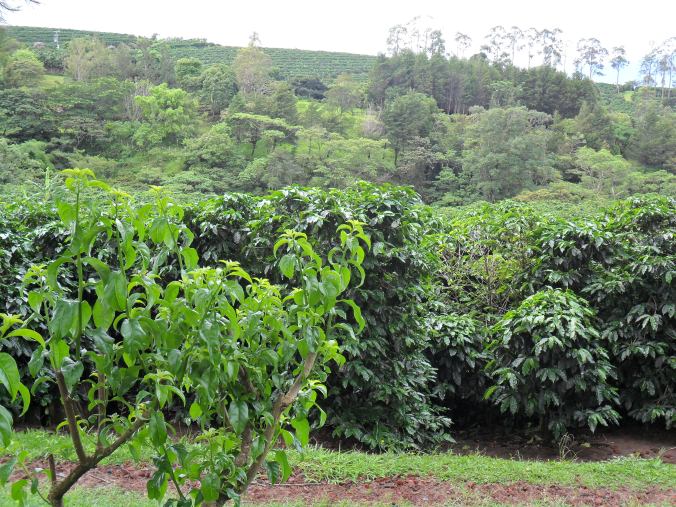 Coffee, the main export of Costa Rica.  In the highlands, coffee grows everywhere even along the berms in places so steep I wondered how the person picking the beans did not fall over.  Of course, I wondered the same thing about the dairy cattle grazing on the mountain slopes.