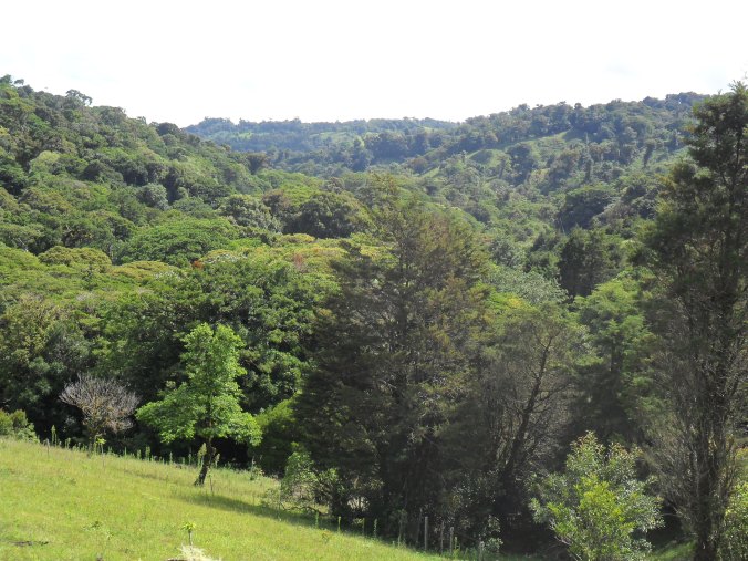 This view shows the Bay of Nicoya in the distance from my hotel room in Monteverde.  The following photos all show views in the mountains near this little remote town.  There is only one road in and out and it is not paved and it is narrow.  The town was originally settled by Quakers from Canada who still believe a paved road will ruin the peaceful lifestyle.  Both the Quakers and the town are famous for their cheese which was served both plain and fried for breakfast.