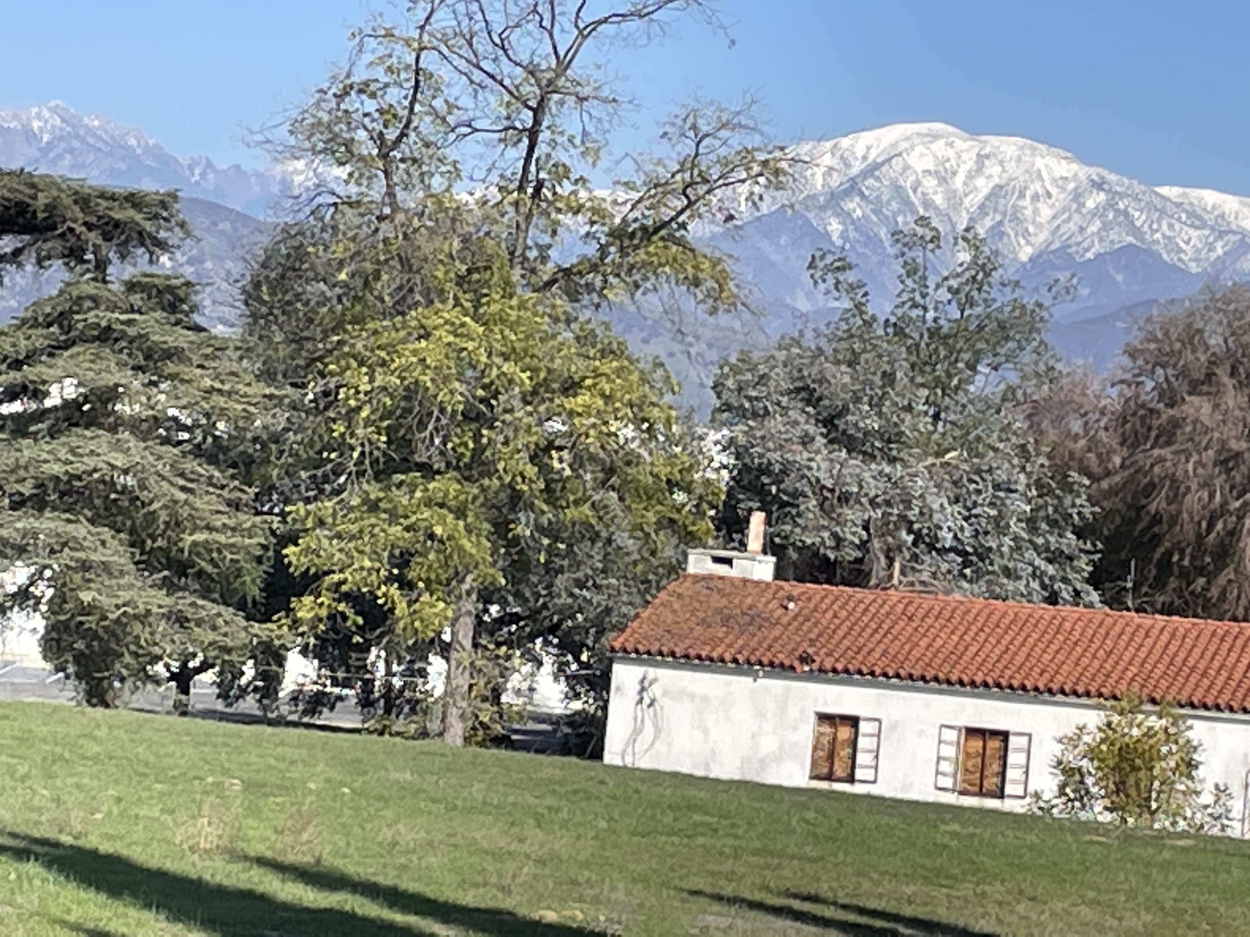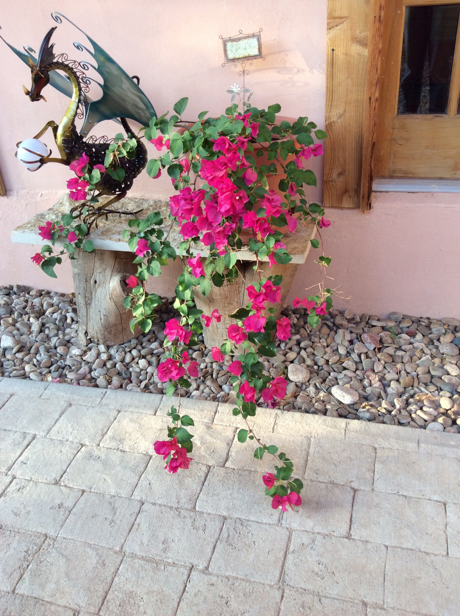 of my favorite houses, a one-story, tan, Spanish style, small compared