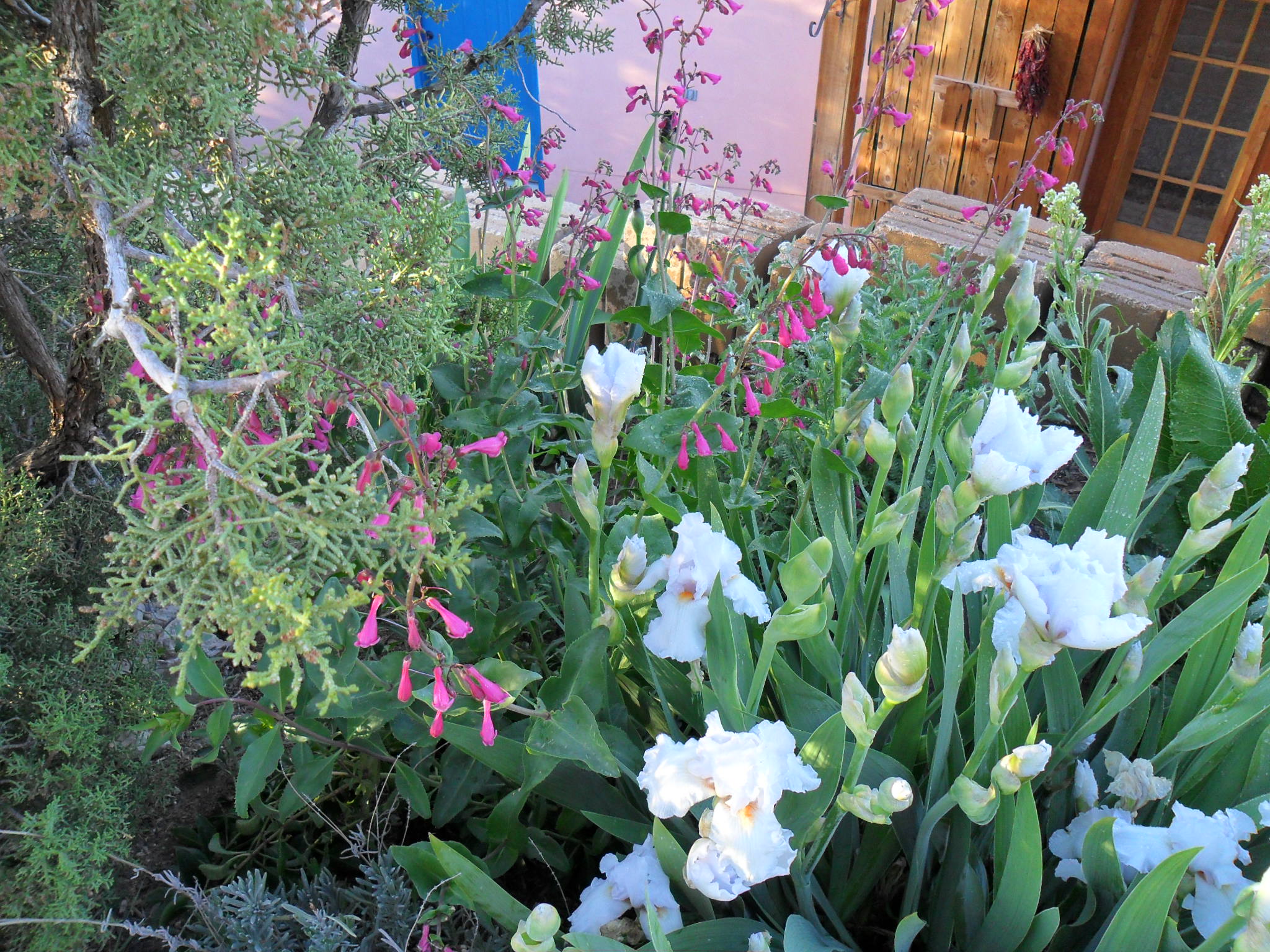 Everyone agreed to eat dinner on the patio–and you were thinking all we planned to do is drink wine. The menu: brisket, roasted vegetables (red and purple potatoes, brussel sprouts, Anaheim peppers, carrots, onions roasted with lots of olive oil, basil, oregano, and herbes de Provence), green salad and bread with chunks of garlic in it.