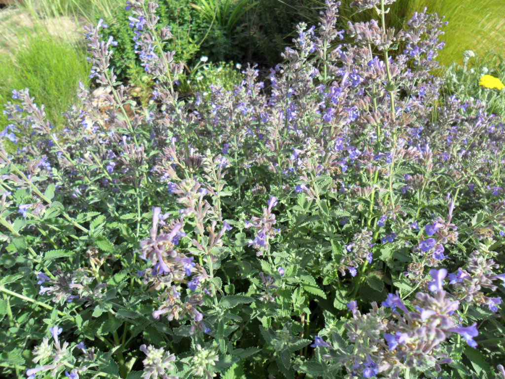 This morning I went out to my xeroscape garden–I have no lawn–and photographed bees. At one catmint plant, so many busy bees made a clearly audible buzzing sound. I witnessed at least four different kinds–species–of bees. These
